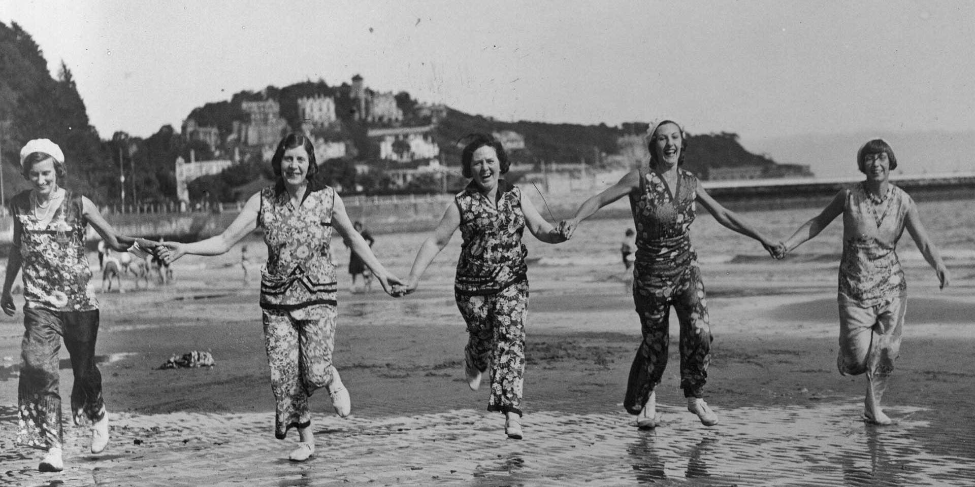 Initially, wearing pajamas on the beach was an “act of anti-fashion,” Schiff says, and a response to a lack of suitable garments available to women at the time. Not only did they provide a degree of modesty covering up a swimsuit, but beach pajamas were also worn for warmth on winter beaches, and to prevent sunburn.